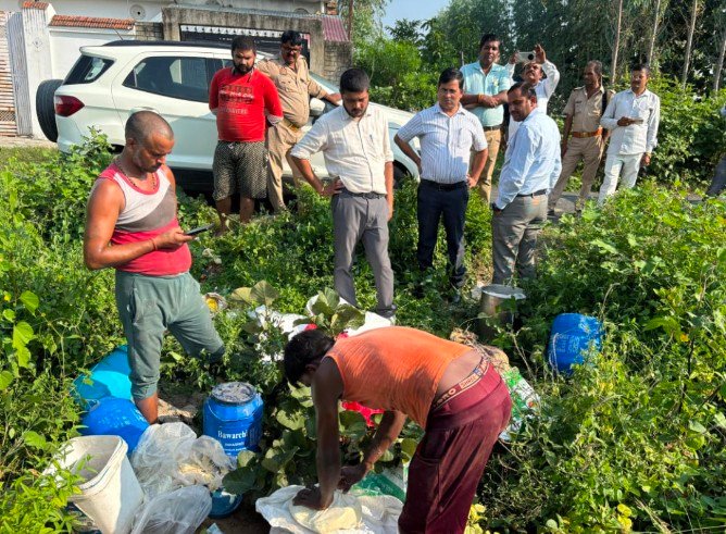आज 17 अक्टूबर 2025 को एसडीएम पयागपुर अश्वनी पांडे ने विशेश्वरगंज में फूड सेफ्टी टीम संग छापेमारी में 10 क्विंटल मिलावटी खोया , पनीर और मिल्क से बने दूषित प्रोडक्ट को नष्ट कराया ।