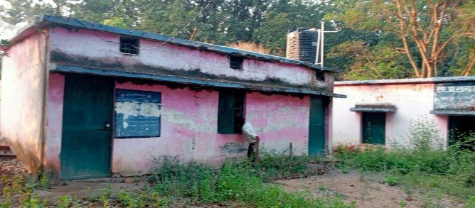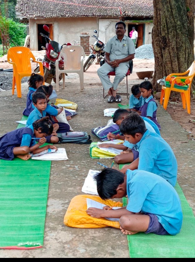 डाबरी भाठा स्कूल अति जर्जर होने से पहली से पांचवीं कक्षा के बच्चे को पेड़ के नीचे तो कभी आंगनबाड़ी केंद्र में किया जा रहा है कक्षा संचालन
