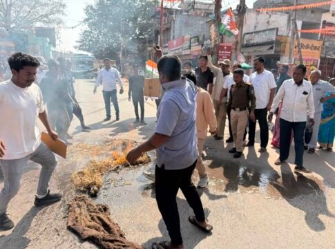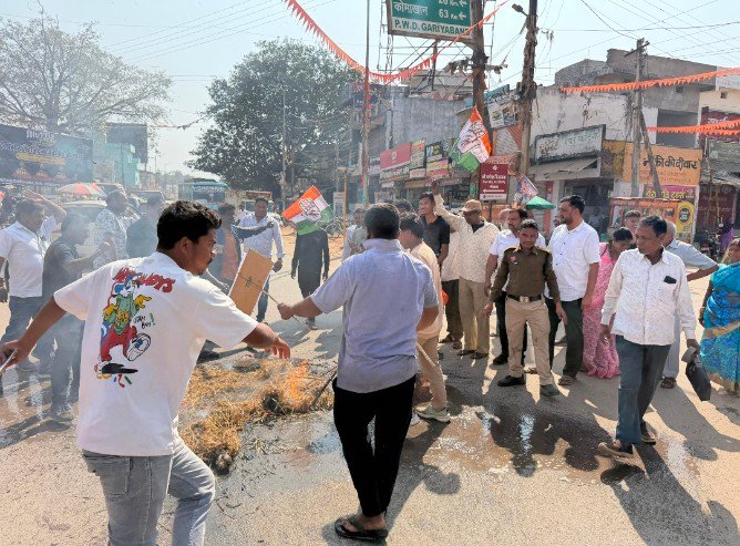 गरियाबंद में सैनिक स्कूल विवाद ने पकड़ा तूल, सड़क पर उतरी कांग्रेस — डीईओ का पुतला दहन, पारदर्शिता पर उठे सवाल