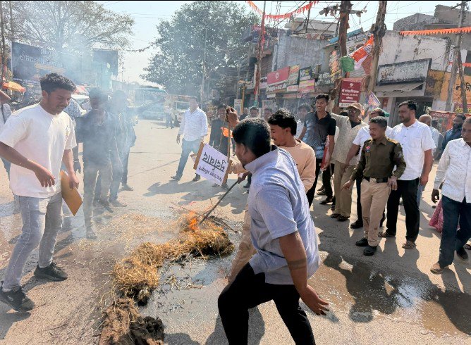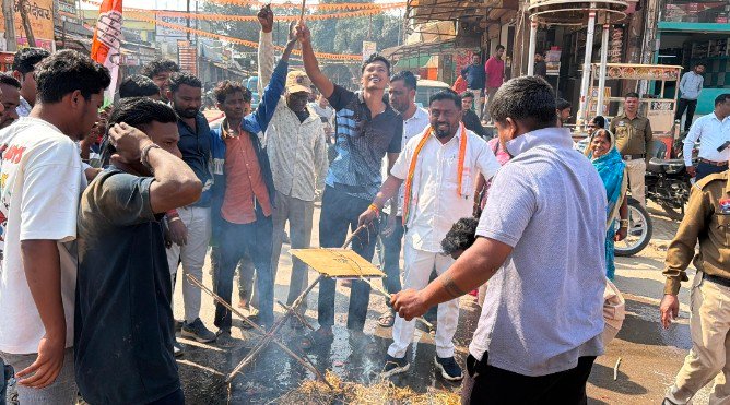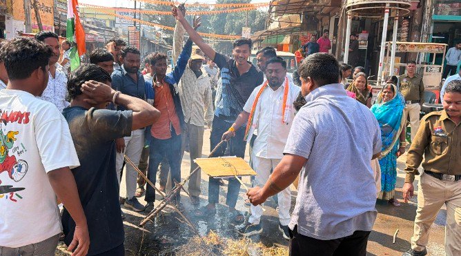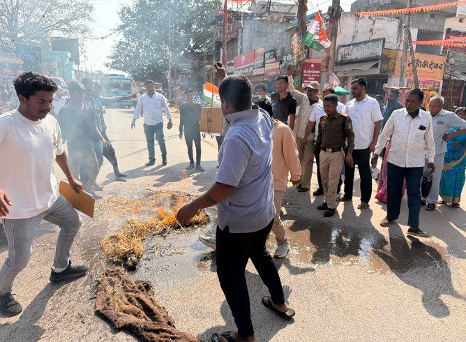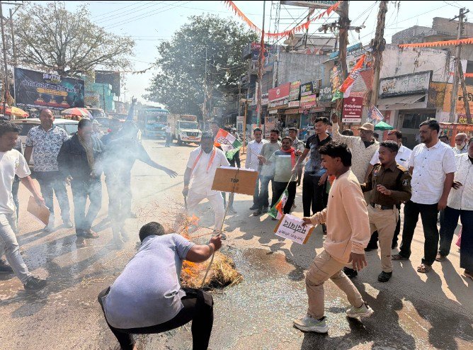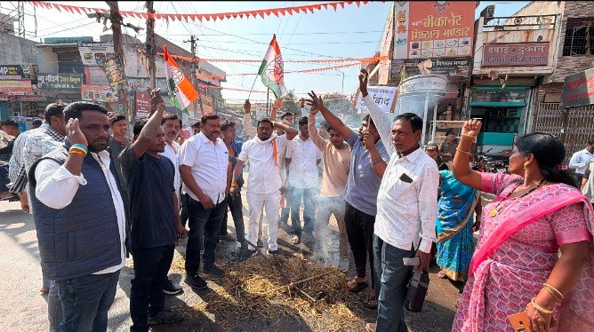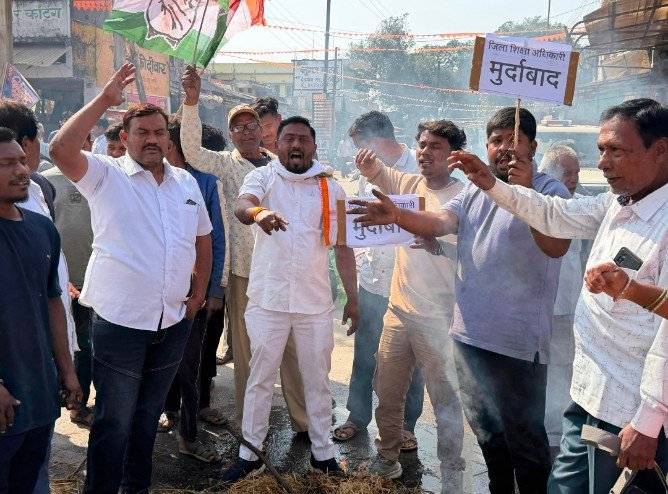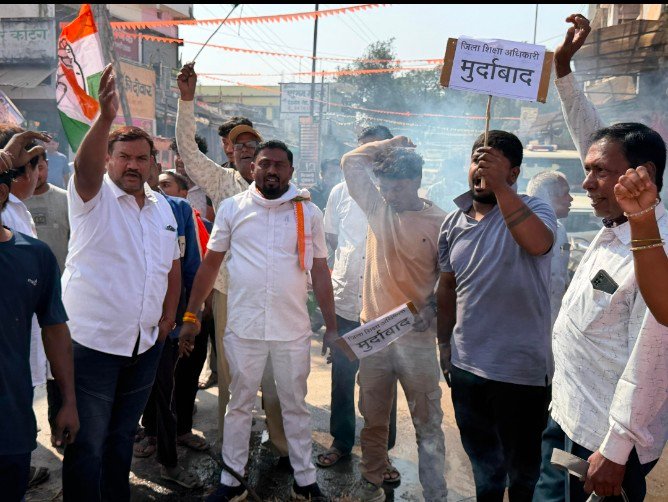 इस फैसले से आक्रोशित कांग्रेसी नेताओं और कार्यकर्ताओं ने गुरुवार को तिरंगा चौक पर जोरदार प्रदर्शन करते हुए जिला शिक्षा अधिकारी (डीईओ) का पुतला दहन किया और जमकर नारेबाजी की।