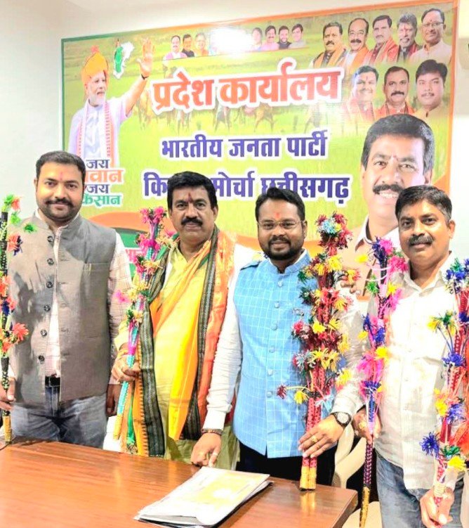 गरियाबंद–:–गुरुवार रात भारतीय जनता पार्टी किसान मोर्चा की जंबो टीम की घोषणा भाजपा प्रदेश महामंत्री नवीन मारकंडे द्वारा की गई। इस घोषणा के साथ ही प्रदेशभर में संगठनात्मक गतिविधियों में तेजी देखने को मिल रही है। भाजपा किसान मोर्चा के प्रदेश अध्यक्ष आलोक सिंह ठाकुर के अनुशंसा पर देवभोग क्षेत्र के लोकप्रिय जनसेवक एवं सभापति देवेंद्र ठाकुर को प्रदेश मंत्री की महत्वपूर्ण जिम्मेदारी सौंपी गई है।