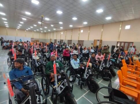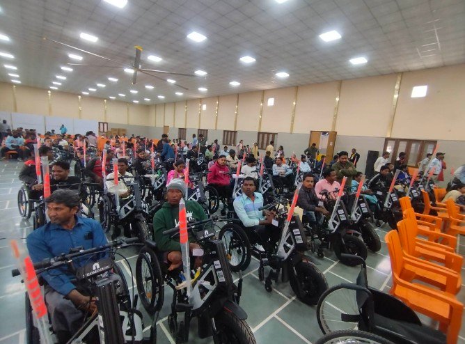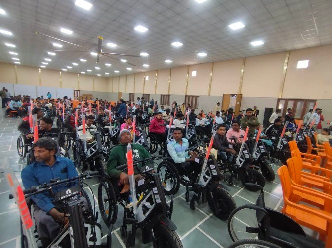 सक्षम के द्वारा सक्षम-एक नई उड़ान के तहत प्रदेश भर के 58 दिव्यांगजनों को निःशुल्क ई-साइकिल वितरण किया गया
