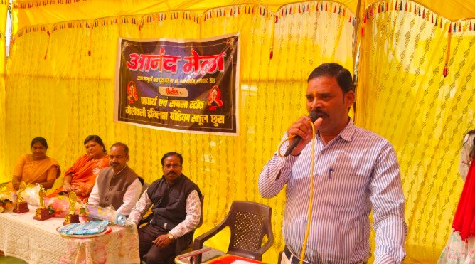 विशिष्ट अतिथि के रूप में राम बाई सिन्हा, गंगा ओगरे, यामिनी सिन्हा, कमलेश चक्रधारी, शीतल मंचासिन हुए। कार्यक्रम का शुभारंभ मां सरस्वती के पूजन से हुआ। प्राचार्य संतोष निषाद ने उद्देश्य पर प्रकाश डालते हुए कहा कि आनंद मेला, व्यापार और व्यवसाय के समझ बनाने के लिए आयोजित किया गया है। मुख्य अथिति की आसंदी से स्वावलंबन के पर्याय के.आर. सिन्हा ने कहा कि व्यापार विनिमय की कला विकसित करने, स्वावलंबन की सीख प्रदान करने हेतु मड़ई मेला की तरह आनंद मेला रखा गया है। यह विद्यालय बच्चों के अनुशासन, संस्कार, सृजनात्मक क्षमता के विकास के लिए प्रतिबद्ध है, जिसके लिए निरंतर विविध गतिविधि आयोजित करते आया है। कार्यक्रम का लुत्फ उठाते हुए सिन्हा ने कहा कि गुलगुला भजिया, गुजिया, पीढ़िया, अंगाकर रोटी, सीलपट्टा चटनी ने बचपन का याद ताजा कर दिया। मंचासीन अतिथियों ने भारत के युवाओं को भारत माता की सेवा के लिए तत्पर रहने का सन्देश दिया। युगपुरुष स्वामी विवेकानंद जी के संदेशों को आत्मसात करने का संदेश भी दिया। बच्चों ने विभिन्न स्टॉल लगाकर गाजर का हलवा, गुपचुप, भेल, मंचूरियन, समोसा, फ्रूट चाट, चाइनीस पकोड़ा, नड्डा रोल आदि सामग्री का क्रय-विक्रय किया। इस अवसर पर संकुल समन्यवक रामलाल टांडे, शंकर लाल यदु, संतराम कंवर, स्काउट मास्टर, योगविद अर्जुन धनंजय सिन्हा, देवनारायण यदु, पालकगण, शिक्षकगण, नगर के गणमान्य नागरिकगण शामिल हुए।