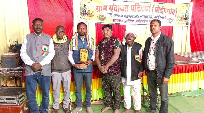 सामाजिक कार्यकर्ता पुनितराम ठाकुर लोक कलाकार के प्रदेशाध्यक्ष रजीत चक्रधारी के हाथों सम्मानित हुए