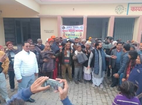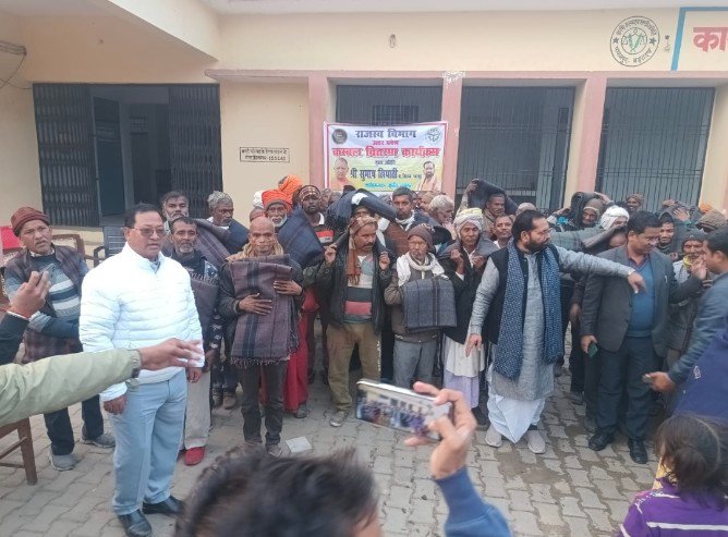 बढ़ती ठंड के चलते कंबल का वितरण किया गया
