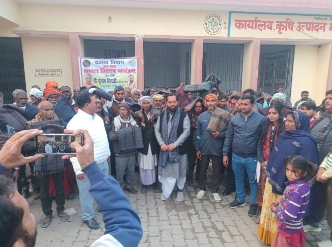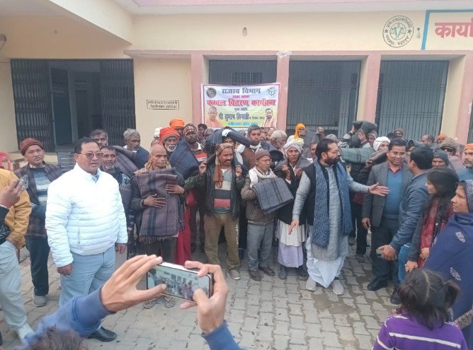 पयागपुर–:–आज दिनांक 11 जनवरी 2026 को तहसील पयागपुर के अंतर्गत राजस्व विभाग द्वारा कंबल वितरण का कार्यक्रम तहसील परिसर और मंदिर परिसर में किया गया ,