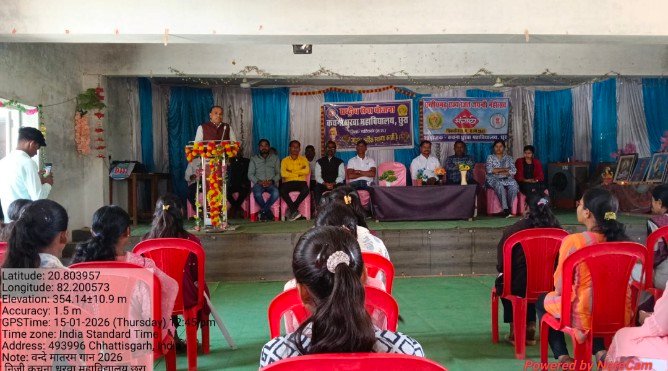 छुरा–:–राष्ट्रगान, वंदे मातरम् की 150 वीं वर्षगांठ पर,नगर के निजी कचना धुरुवा महाविद्यालय में सामूहिक वंदे मातरम् गान का आयोजन किया गया।महाविद्यालय में संचालित राष्ट्रीय सेवा योजना इकाई के तत्वाधान में आयोजित कार्यक्रम , रासेयो के पूर्व स्वयं सेवक रहे युवा समाज सेवी शीतल ध्रुव, एवं जनप्रतिनिधि पार्षद बलराज पटेल की आतिथ्य में सम्पन्न हुआ।कार्यक्रम की शुरुआत मां शारदे व भारत माता की छाया चित्र पर दीप प्रज्ज्वलित कर, सामूहिक वंदे मातरम् गायन के साथ हुआ।जिससे पूरा सभा हाल देशभक्ति की भावना से गूंज उठा। इस अवसर पर प्राचार्य डॉ. दिनेश साहू ने वंदे मातरम् की ऐतिहासिक पृष्ठभूमि, उसकी रचना एवं राष्ट्रीय महत्व पर अपनी बातें रखी। कहा कि यह गीत भारत माता के प्रति श्रद्धा, समर्पण और बलिदान का प्रतीक है, जिसने स्वतंत्रता संग्राम के दौरान देशवासियों में नई चेतना का संचार किया।वही समाज सेवी शीतल ध्रुव ने विद्यार्थियों को राष्ट्रीय एकता व राष्ट्रगीत के प्रति सम्मान और अनुशासन का महत्व बताते हुए कहा कि युवाओं की सकारात्मक सोच, अनुशासित जीवन और कर्मठता ही देश के उज्ज्वल भविष्य की मजबूत आधारशिला है। उन्होंने सभी से अपने कर्तव्यों का निष्ठापूर्वक निर्वहन करते हुए राष्ट्र निर्माण में सक्रिय योगदान देने का आह्वान किया। पार्षद बलराज पटेल ने कहा कि वंदे मातरम् गीत सदैव मातृभूमि की सेवा में तत्पर रहने के लिए प्रेरित करता है, यह केवल गीत नहीं वरन् मातृभूमि की वंदना है।कार्यक्रम अधिकारी रेख राम कुर्रे ने सभी का आभार व्यक्त करते हुए कहा कि हमारा देश अनेक भाषाओं और संस्कृतियों का संगम है ,फिर भी हम एक है,क्योंकि हमारी पहचान भारतीय है।यह गीत हमें जोड़ता है और देश के प्रति समान प्रेम की भावना पैदा करता है। महाविद्यालय डी.एल.एड की छात्रा ने वंदे मातरम् गीत के संबंध में संदेश वाचन किया।इस दौरान छात्र-छात्राएं, प्राध्यापक, एवं कार्यालयीन कर्मचारी उपस्थित रहे।