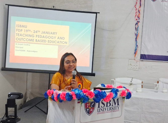 छुरा–:–आईएसबीएम विश्वविद्यालय नवापारा कोसमी छुरा में उच्च शिक्षा की गुणवत्ता को सुदृढ़ करने की दिशा में एक महत्वपूर्ण पहल के तहत फैकल्टी डेवलपमेंट प्रोग्राम (एफडीपी) का उद्घाटन समारोह सम्पन्न हुआ जिसके मुख्य अतिथि शासकीय कमलादेवी राठी महिला स्नातकोत्तर महाविद्यालय, राजनांदगांव की प्राचार्या प्रो. अंजली अवधिया थी। विश्वविद्यालय के आंतरिक गुणवत्ता आश्वासन प्रकोष्ठ (आइक्यूएससी) के अंतर्गत आयोजित होने वाले इस कार्यक्रम में बदलते समय के साथ शिक्षण की नई विधियों पर चर्चा की गई।