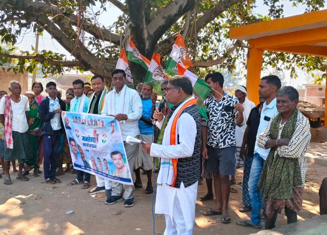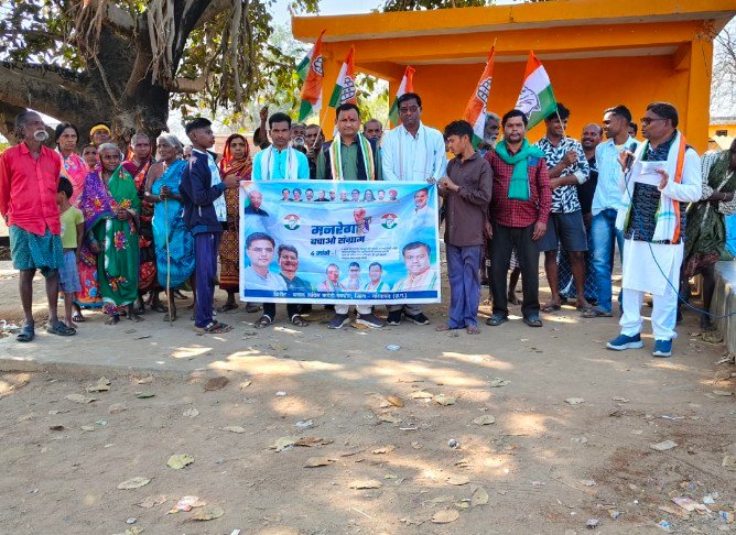 नवनियुक्त ब्लाक कांग्रेस कमेटी अध्यक्ष भूपेन्द्र मांझी “मनरेगा” बचाओ विचार धारा को लेकर गांव-गांव में चलाई जा रही संग्राम