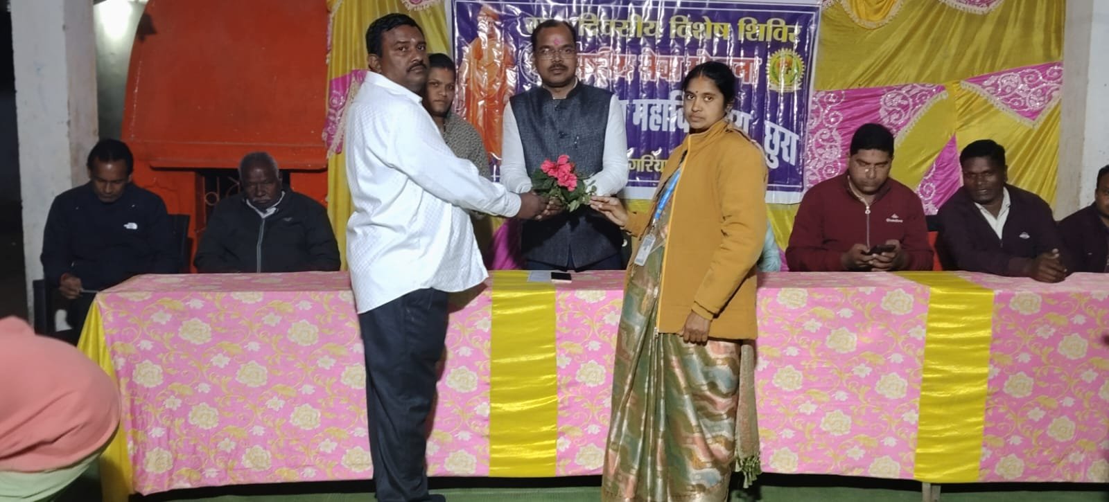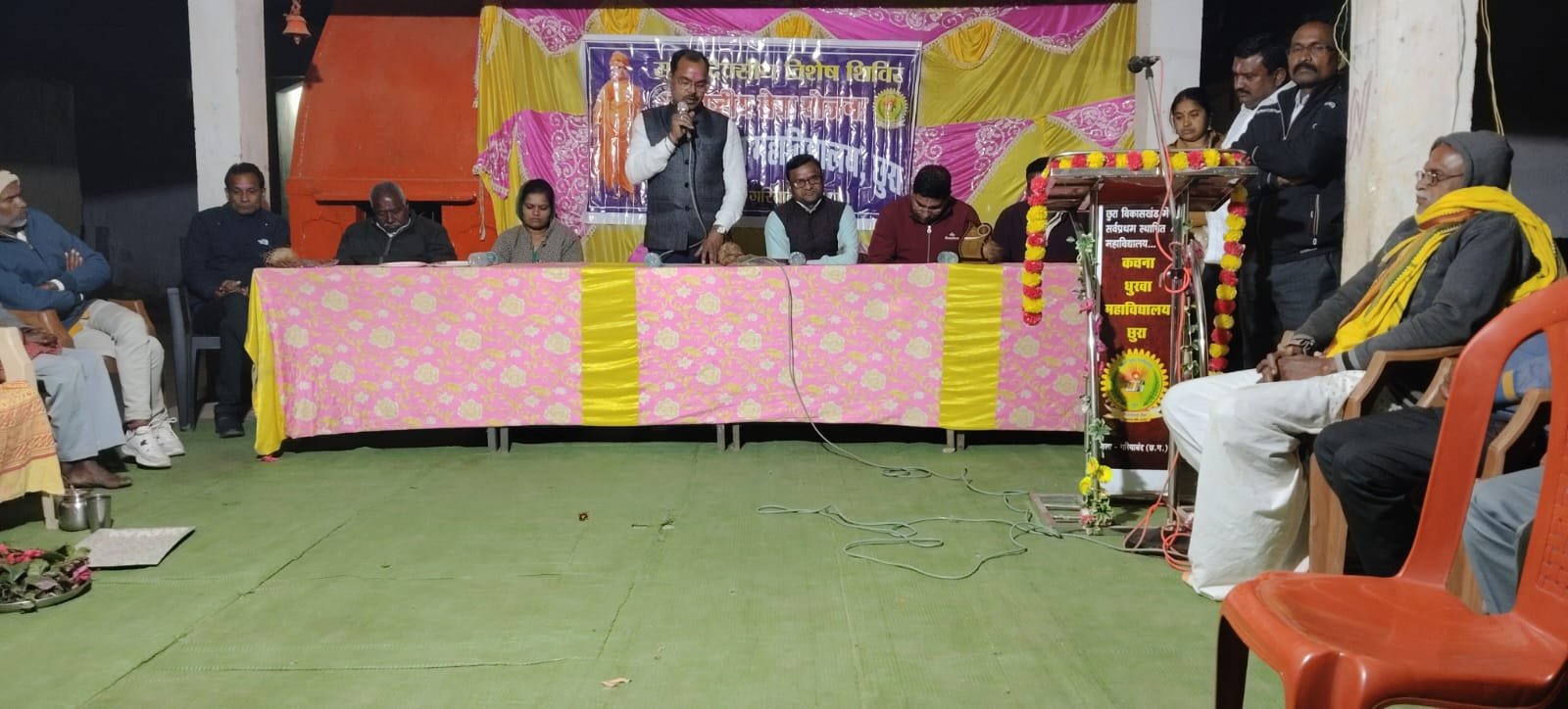 महाविद्यालय प्रबंध समिति सदस्य तेजस्वी यादव की अध्यक्षता में आयोजित उद्घाटन सत्र के विशेष अतिथि श्रीमती सीमा गुप्ता उपसरपंच ग्राम पंचायत मुढ़ीपानी ,परमेश्वर यादव उपसरपंच ग्राम पंचायत रसेला, ग्राम पटेल बृजलाल कंवर , ग्रामीण अध्यक्ष जानु राम दिवान, सेवानिवृत्त प्रधान पाठक दयाराम नागेश, कृष्णा गुप्ता, पूर्व उपसरपंच थानेश्वर कंवर पूर्व जनपद सदस्य कुलेश्वर, निषाद ग्रामीण सचिव व्यवसायि रोशन देवांगन, इमरान मेमन मंचस्थ रहे।कार्यक्रम अधिकारी रेखराम कुर्रे ने सभी का स्वागत करते हुए कहा कि इस दूरस्थ वनांचल ग्राम में “नशामुक्त समाज के लिए युवा” उद्देश्य को लेकर राष्ट्रीय सेवा योजना के स्वयं सेवक यह शिविर आयोजित किए है। उन्होंने शिविर के समस्त कार्य – योजनाओं के बारे में विस्तार पूर्वक ग्राम वासियों को अवगत कराए। मुख्य अतिथि जिला पंचायत कृषि सभापति लेखराज ध्रुवा ने अपने जिला पंचायत क्षेत्र के दूरस्थ वनांचल ग्राम में शिविर आयोजित करने पर कार्यक्रम अधिकारी एवं सहयोगी स्वयं सेवको को धन्यवाद ज्ञापित किया ।कहा कि अनुशासन और सेवा भाव से ही समाज को शिक्षित और विकसित बना सकते है। वही कार्यक्रम की अध्यक्षता कर रहे महाविद्यालय प्रबंध समिति सदस्य तेजस्वी यादव ने कहा कि यह शिविर छात्रों को किताबी ज्ञान से परे समाज की वास्तविक समस्याओं से परिचित कराता है और उनमें सेवाभाव विकसित करता है। यह सामुदायिक सेवा के प्रति समर्पण और राष्ट्रीय विकास में भागीदारी को प्रोत्साहित करता है। उप सरपंच परमेश्वर यदु ने छात्र छात्राओं को कहा कि जो बच्चे मर्यादा में रहते व माता पिता की बातों को सम्मान देते वह सतत् विकास करते। वही ग्राम के वरिष्ठ सेवानिवृत शिक्षक दयाराम नागेश ने अपने छात्र जीवन के अनुभवों को साझा करते हुए छात्र छात्राओं को नशा से दूर रहने की अपील की उन्होंने नशा के प्रकार एवं जीवन में उनके दुष्प्रभाव से अवगत कराया।मंच संचालन सहायक कार्यक्रम अधिकारी तरुण निर्मलकर ने किया।तत्पश्चात सभी अतिथियों को रासेयो का प्रतीक चिन्ह एवं श्रीफल भेंट कर सम्मानित किया। इस अवसर पर महाविद्यालय के सहायक प्राध्यापिका निर्मला यादव ,समूह की महिलाएं आरती निषाद सावित्री दिवान आंगनबाड़ी कार्यकर्ता अंबिका कंवर ग्राम प्रमुख,जयराम दीवान, गोकुल ध्रुव,रामाधीन निषाद,मुंसु ठाकुर पंच गण महिला कमांडो, मितानिन समस्त ग्रामीण, कॉलेज के शिविरार्थी छात्र छात्राओं की उपस्थित रही।
