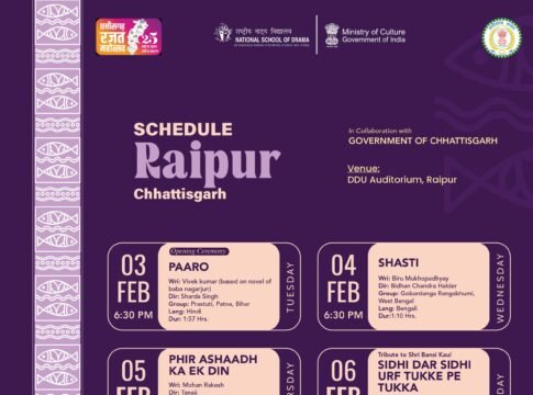 रायपुर में पहली बार भारत रंग महोत्सव, 3 से 8 फरवरी तक राष्ट्रीय रंगमंच का भव्य आयोजन।देश के प्रतिष्ठित रंगकर्मी और चयनित नाट्य प्रस्तुतियाँ करेंगी मंच को जीवंत।प्रवेश निःशुल्क, छत्तीसगढ़ की रंग-संस्कृति को मिलेगा राष्ट्रीय मंच।