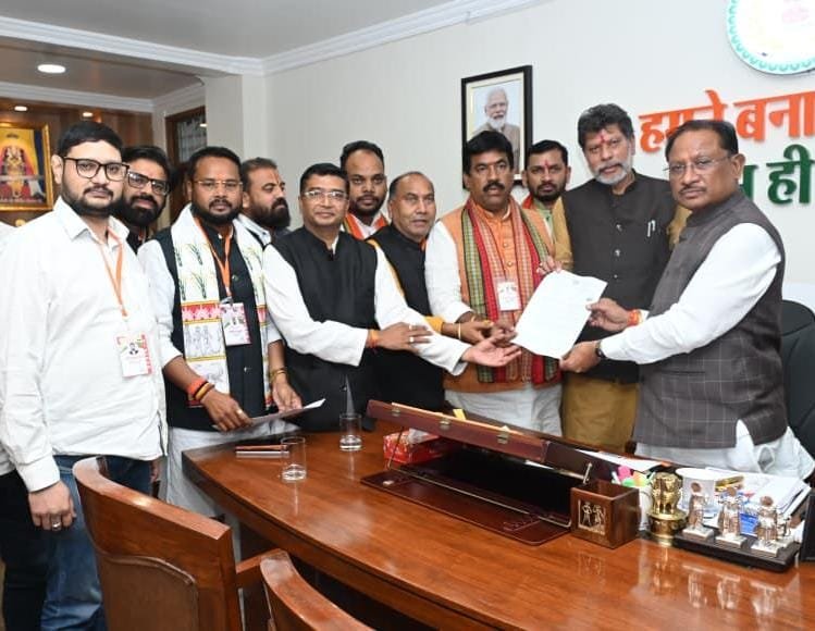 रायपुर-:-भारतीय जनता पार्टी किसान मोर्चा के प्रदेश अध्यक्ष श्री आलोक सिंह ठाकुर जी के नेतृत्व में प्रदेश उपाध्यक्ष मन्नालाल चौधरी प्रदेश मंत्री देवेंद्र ठाकुर देवभोग,प्रदेश मंत्री राजेश साहू,प्रवक्ता रविंद्र सिंह सरोना,जी राम जी प्रकल्प सहसंयोजक योगेश्वरानंद नेताम,मीडिया प्रभारी वैभव वैष्णव,कार्यालय मंत्री रवीश गुप्ता,आई टी सेल प्रभारी संदीप संडे,कार्यसमिति सदस्य अरविंद साहू,माननीय मुख्यमंत्री श्री विष्णु देव साय जी से सौजन्य भेंट कर किसानों के हित में तिथि बढ़ाए जाने के निर्णय पर आभार व्यक्त किया।
