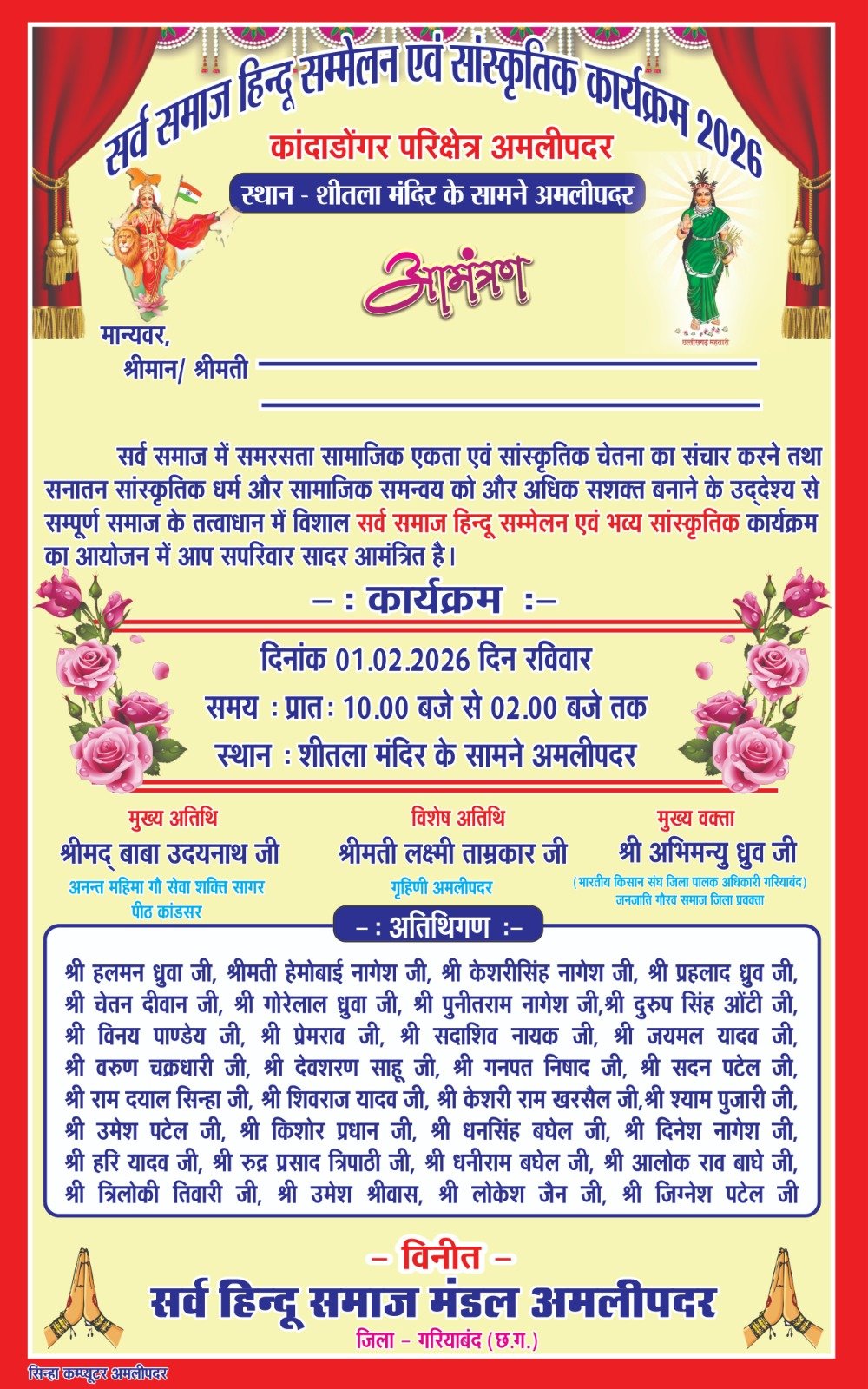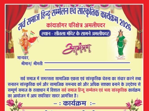 सर्व समाज हिन्दू सम्मेलन एवं सांस्कृतिक कार्यक्रम कांदा डोंगर परिक्षेत्र अमलीपदर में हुआ आयोजन