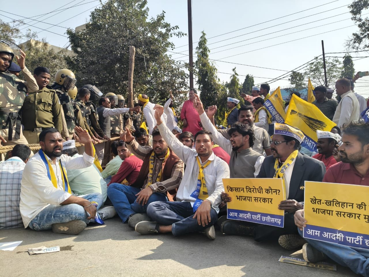 धान खरीदी में भाजपा सरकार की नाकामी, खरीदी की तारीख बढ़ाने और एक मुश्त धान की राशि देने की मांग पर “आप” ने किया मुख्यमंत्री निवास का घेराव