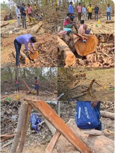 गरियाबंद–:–देवभोग वन परिक्षेत्र मुख्यालय से करीब 2 किलोमीटर दूरी पर स्थित राजस्व इलाके में मौजूद सागौन पेड़ों की अवैध कटाई कर खेतों में लंबे समय से चोरी कर छिपा कर रखे हुए चिरान बना कर उसे बेचा जा रहा था।देवभोग वन परिक्षेत्र की एंटी पोचिंग टीम ने बड़ी कार्रवाई करते हुए वन माफियाओं के घरों में छापेमारी के दौरान मौके पर टीम ने 18 नग लठ्ठा और 2 चिरान के अलावा काटने के उपयोग में लाए जा रहे आरा को जप्त कर कार्रवाई शुरू कर दिया है। जानकारी के मुताबिक वन विभाग ने 3 लोगों को आरोपी बना कर वन सुरक्षा अधिनियम के तहत कार्रवाई कर रही है।यह मामला सामने आया है कि राजस्व के बगैर किसी भी प्रकार कि अनुमति के इमारती का कटाई का है, ऐसे में अब राजस्व विभाग भी कार्रवाई कि तैयारी शुरू कर दिया है।वन विभाग ने इस मामले पर यह बताया कि जंगल की हरियाली और वन्यजीवों की सुरक्षा के लिए इस तरह की सख्त कार्रवाई आगे भी जारी रहेगी। विभाग ने साफ किया है कि जंगल की संपदा पर डाका डालने वालों को बख्शा नहीं जाएगा। लंबे समय से स्थानीय लोगों और पर्यावरण संरक्षणवादी ने मांग की थी कि सागौन पेड़ों की तस्करी करने वालों पर लगाम लगाने बड़े कदम उठाए गए है।वन विभाग की इस बड़ी कार्रवाई से सागौन पेड़ों की तस्करों में हड़कंप मचा हुआ है।