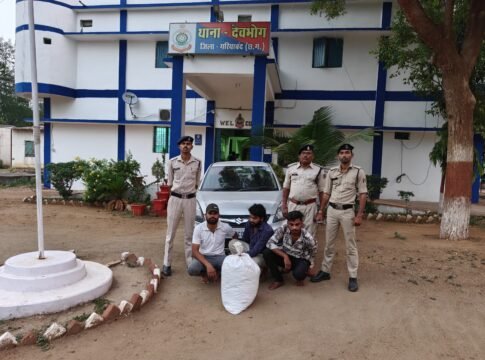 आरोपीगण – 1. मोन्टी जैन पिता – अशोक कुमार जैन उम्र – 25 वर्ष निवासी – दुबे कॉलोनी वार्ड क्रमांक 03, थाना सिटी कोतवाली, जिला अशोकनगर (म.प्र.), 2. राकेश कुशवाहा पिता – राजेन्द्र कुशवाहा उम्र – 25 वर्ष निवासी – जलालपुर, थाना व जिला अशोकनगर (म.प्र.), 3. राजेश उर्फ बिट्टू कुशवाहा पिता – नरेन्द्र सिंह कुशवाहा उम्र – 26 वर्ष निवासी – शंकरपुर, थाना व जिला अशोकनगर (म.प्र.) से पूछताछ में संतोषजनक जवाब न मिलने पर विधिवत कार्यवाही करते हुए वाहन की तलाशी ली गई। वाहन की डिग्गी में रखी एक सफेद प्लास्टिक बोरी से गांजा जैसी गंध आने पर गवाहों की उपस्थिति में जांच की गई, जिसमें मादक पदार्थ गांजा होना पाया गया। गवाहों के समक्ष तौल करने पर कुल 12.100 किलोग्राम (शुद्ध 12 किलोग्राम) गांजा बरामद हुआ, जिसकी अनुमानित कीमत ₹6,00,000/- है।